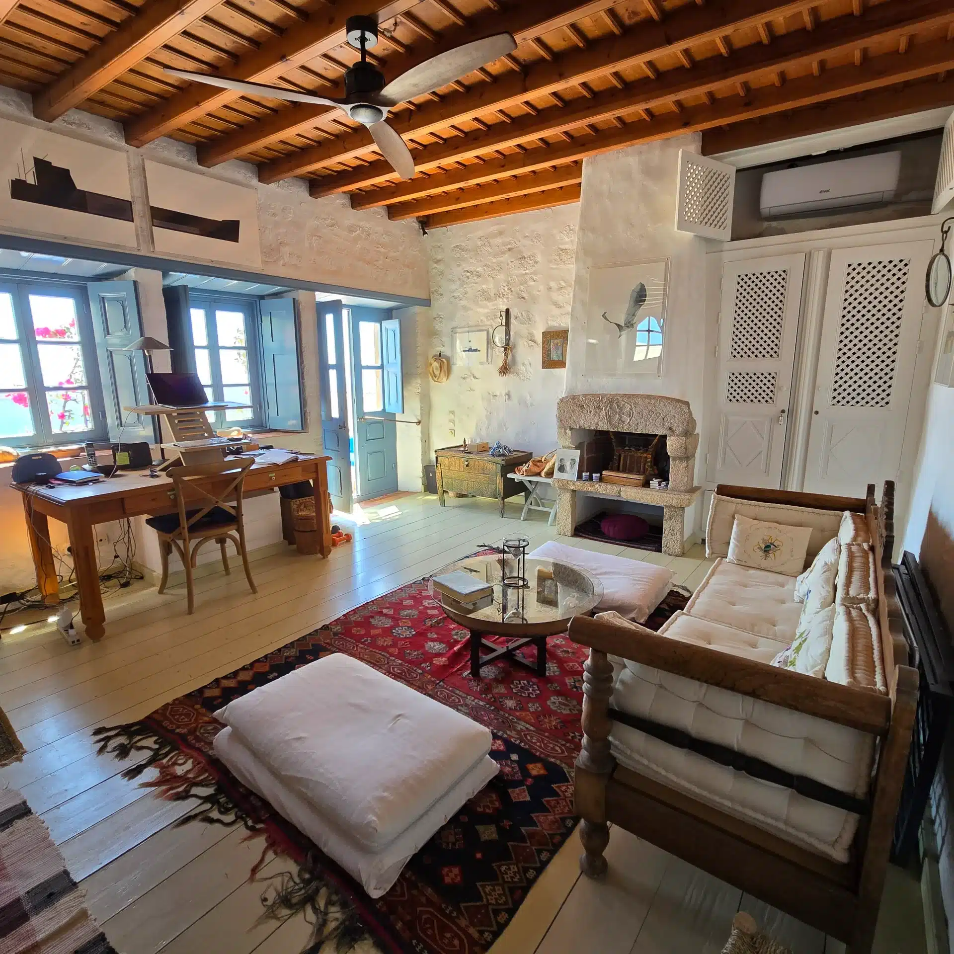 Immerse yourself in the timeless beauty of this three-level home, nestled in the vibrant heart of Chora, Patmos. A harmonious blend of traditional Patmian architecture and curated art pieces, this residence offers an unparalleled stay for up to 7 guests seeking both comfort and cultural richness. Each room is a canvas, adorned with an eclectic…