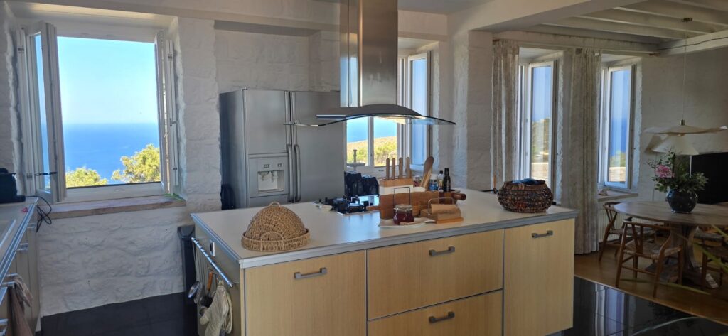 Situated just 5 minutes from the center, and orientated around the view of the Skala bay, this two-storey home is a statuesque refuge, mostly admired by art people and conscious design crowd ! The house’s rounded garden, has a great landscape with old and new trees that makes it a quiet, temple like sanctuary. Top…