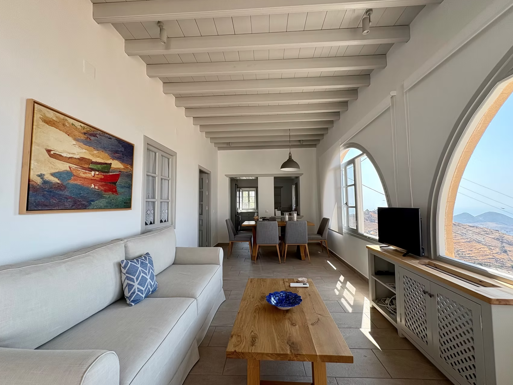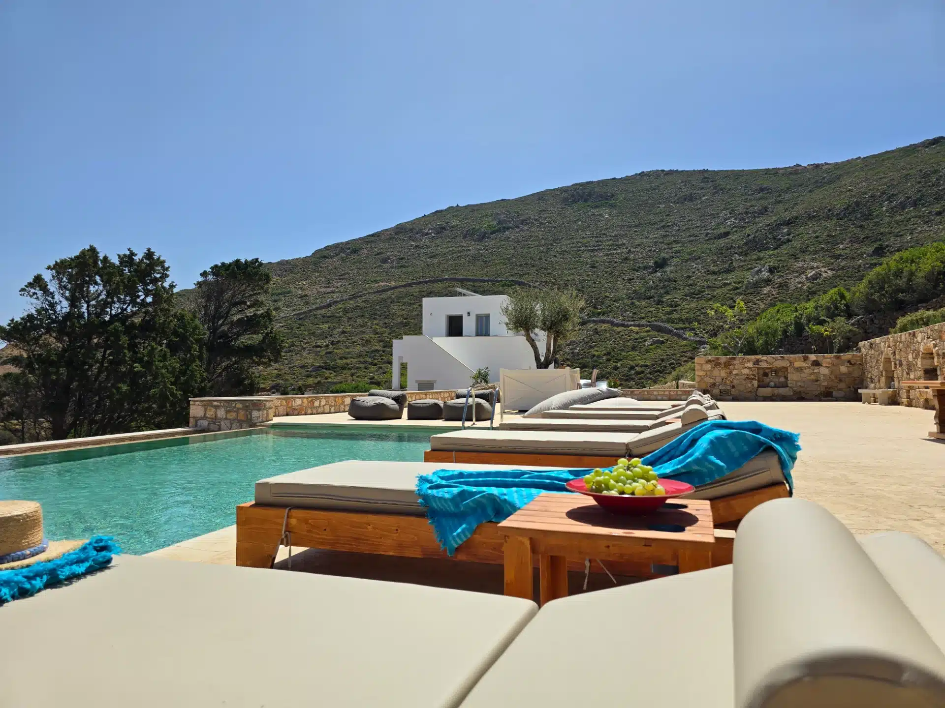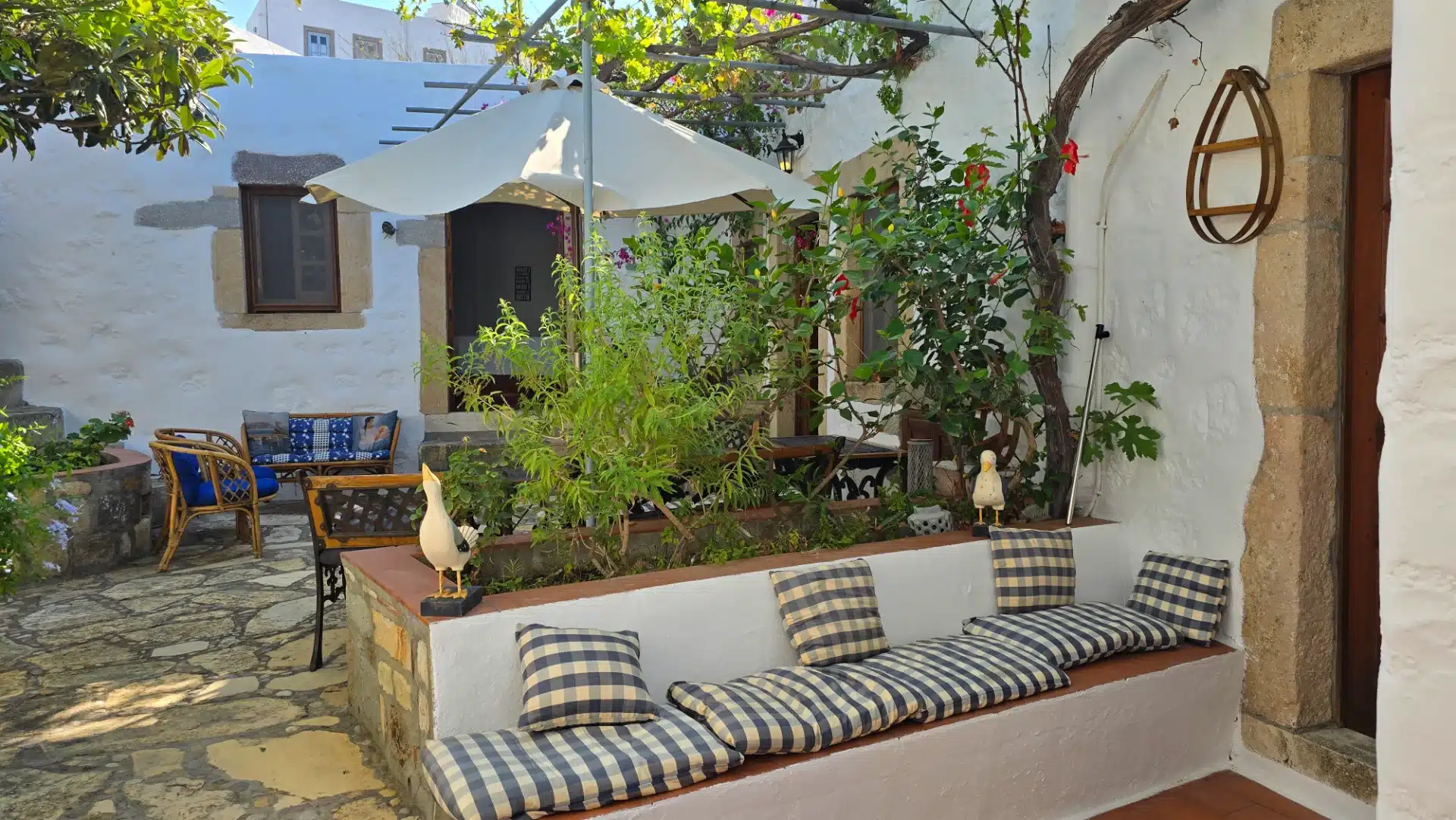 Tucked in the heart of Patmos’ old Chora, this graceful home invites you to unwind in comfort. With a lush garden, serene outdoor lounge, and elegant interiors, it’s your peaceful island escape.