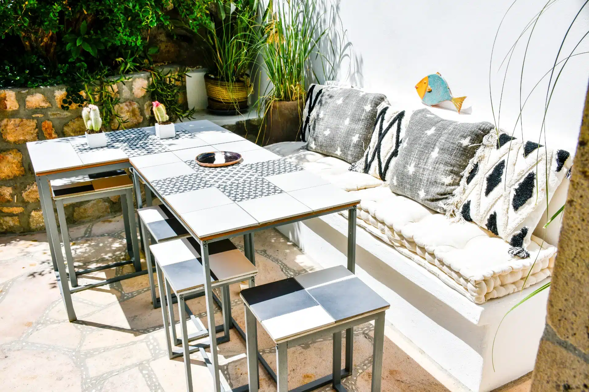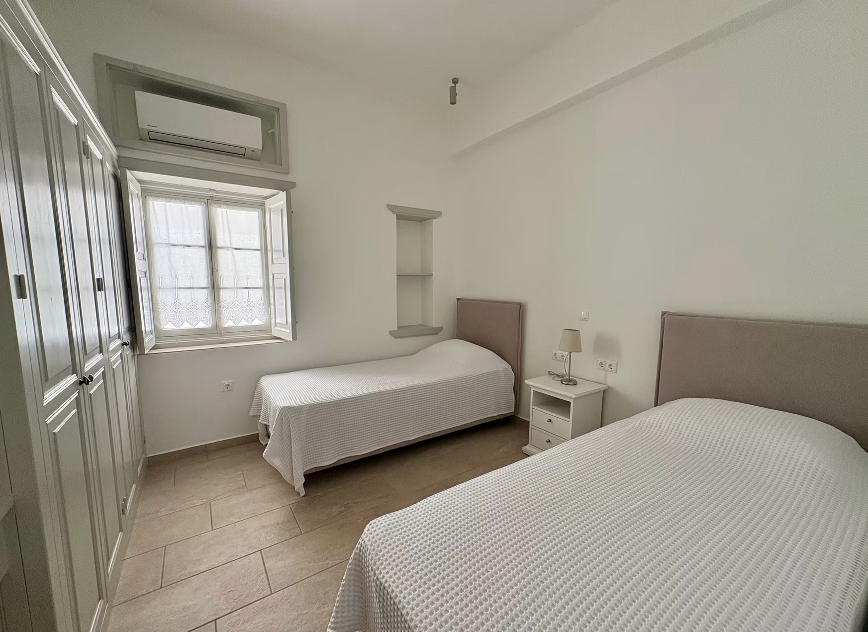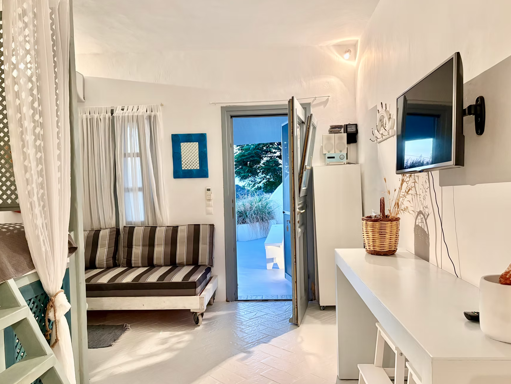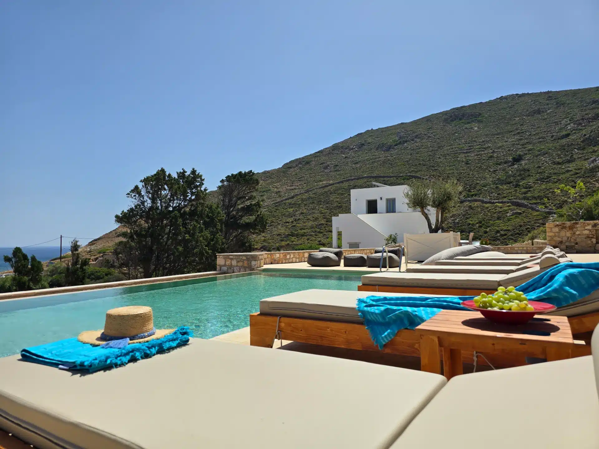 Tucked in the heart of Patmos’ old Chora, this graceful home invites you to unwind in comfort. With a lush garden, serene outdoor lounge, and elegant interiors, it’s your peaceful island escape.