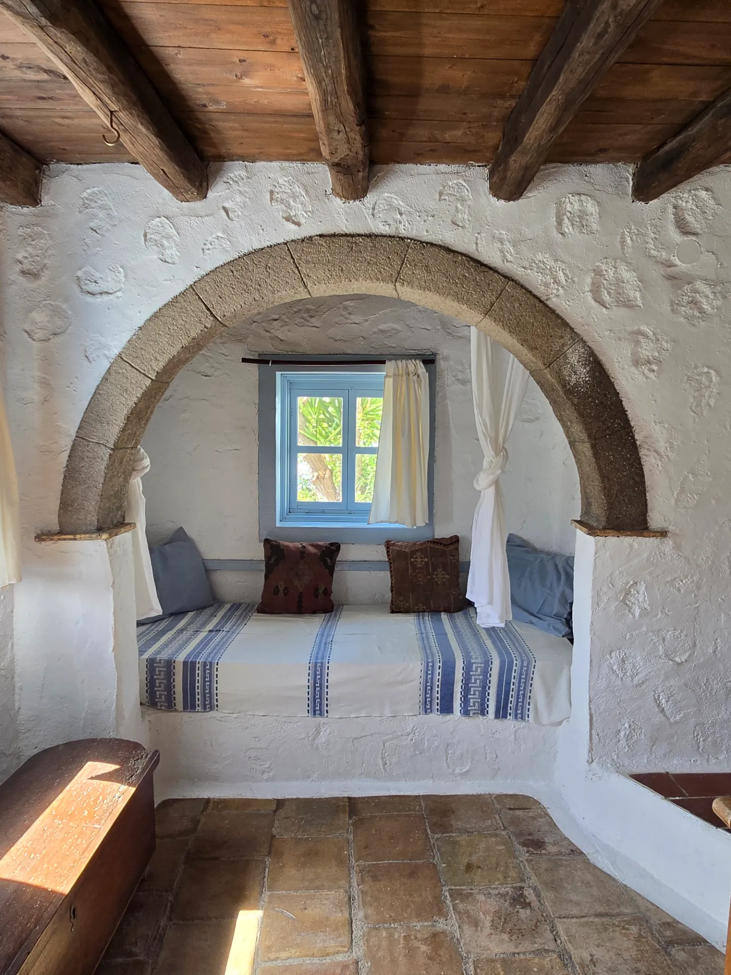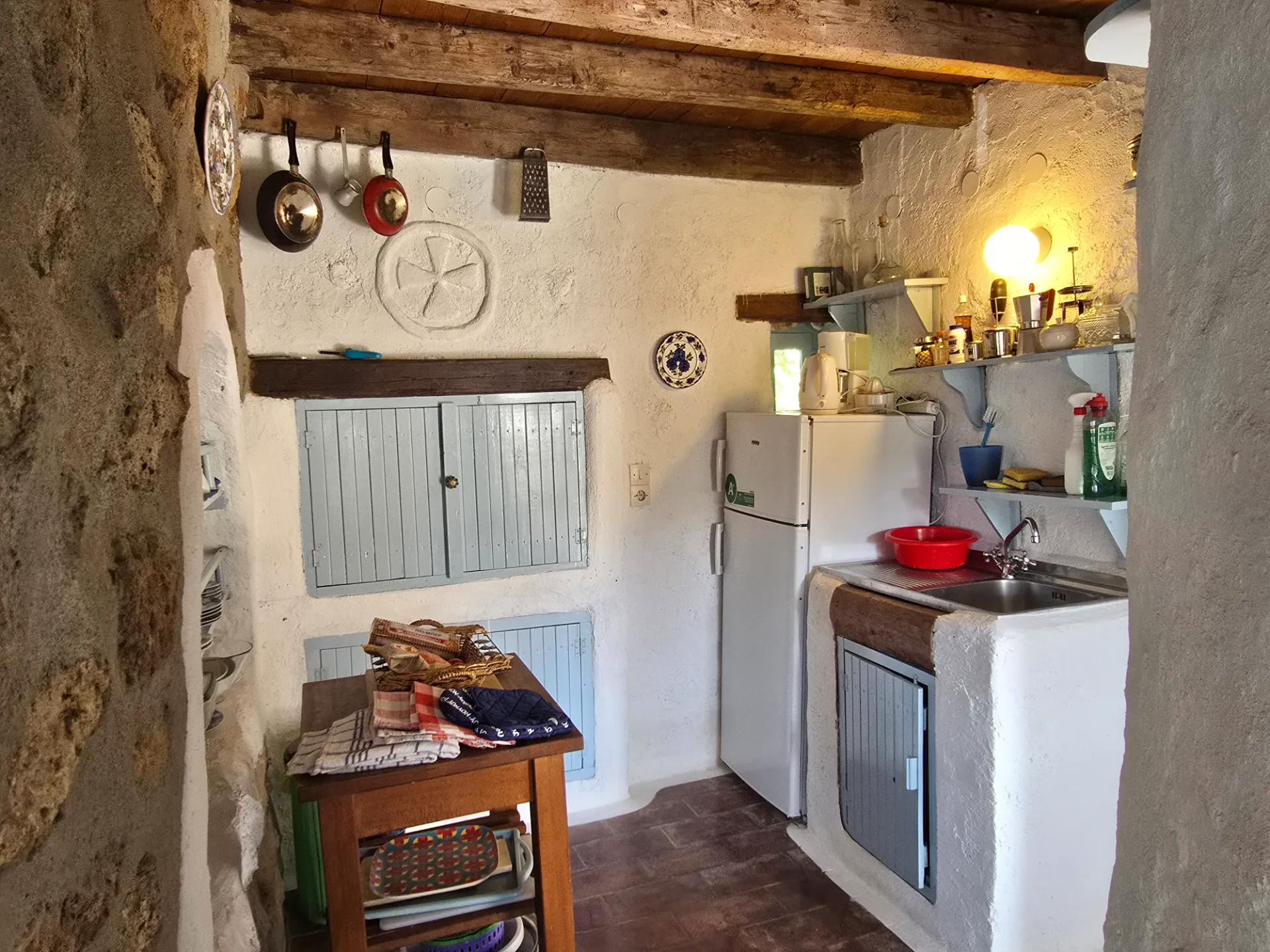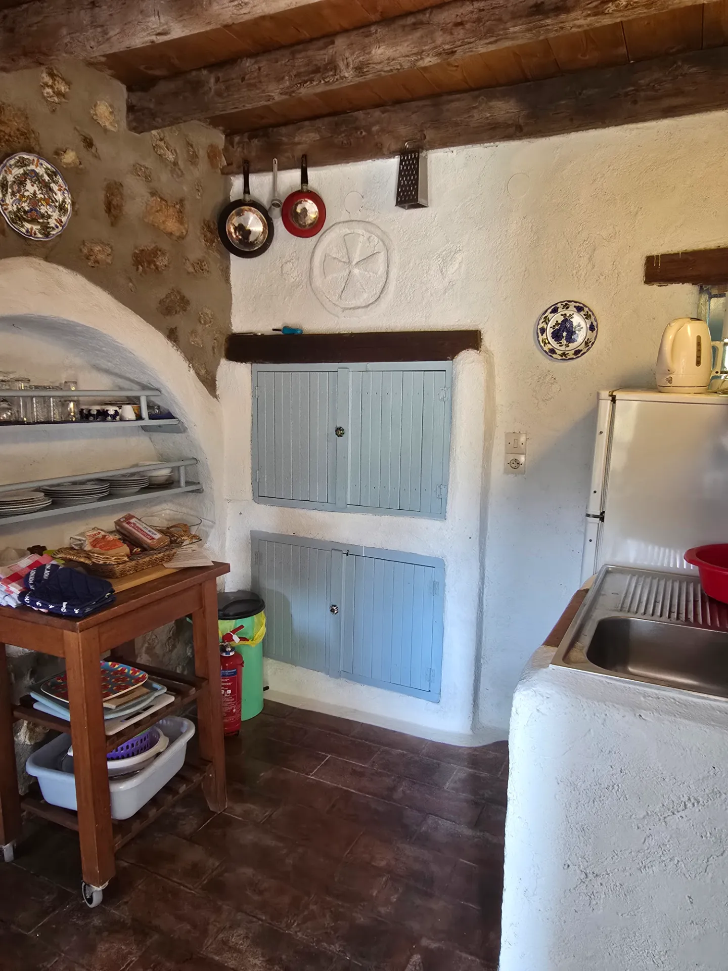 Featuring beautiful high wooden ceilings, the home combines traditional character with comfort.The interior is designed as an open-plan living space, including a comfortable sitting area, dining space, and a fully equipped kitchen. The house also features a mosaic-tiled bathroom with a walk-in shower and a washing machine for added convenience. A warm and inviting home,…