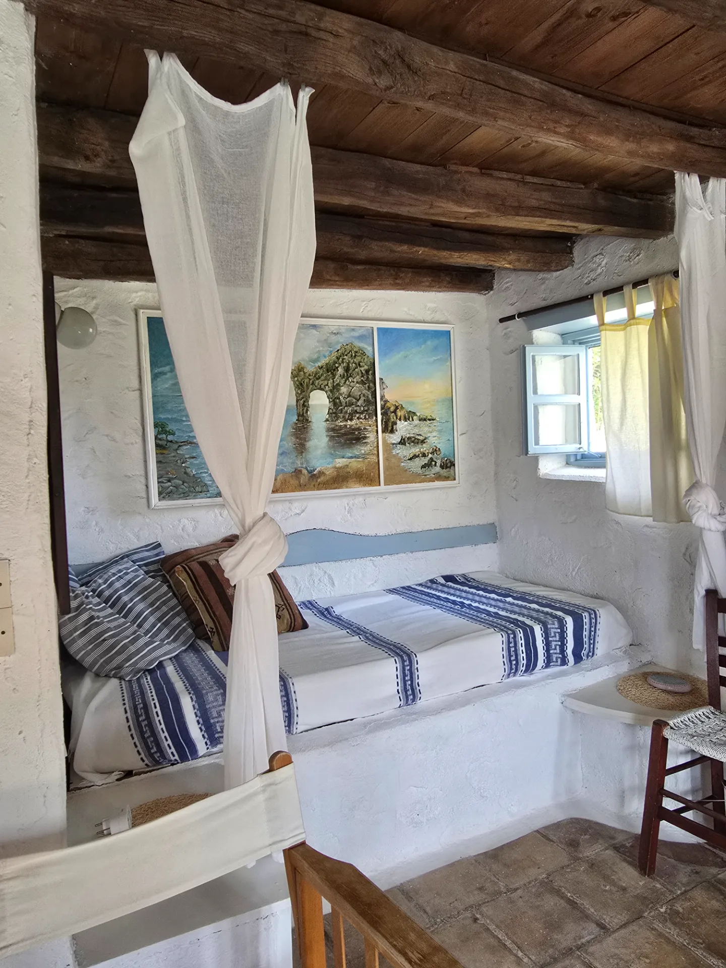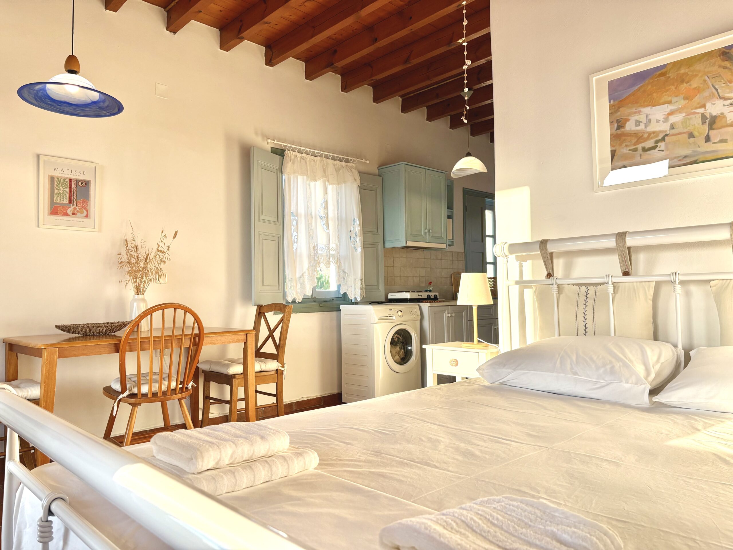 Located within a charming complex next to Merikas in Patmos, this cozy house offers a spacious private veranda with stunning sea views. Inside, you’ll find one bedroom and one bathroom, along with a comfortable living area where the sofa can accommodate two additional guests. Perfect for couples, friends, or small families seeking a relaxing island…