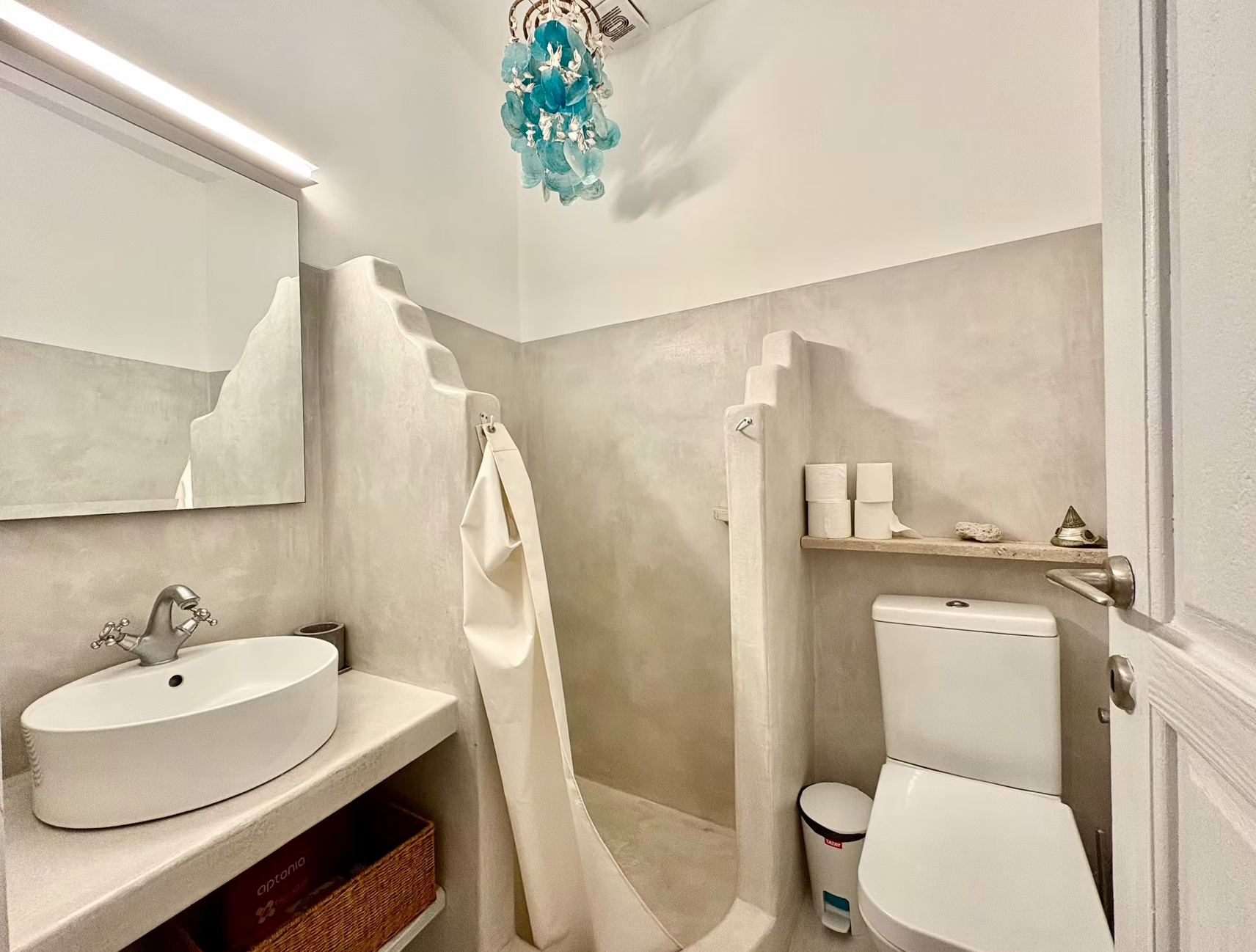 Matina’s Tiny Home, covering a total area of 35 s.m., in one space, is ideal for a couple and encompasses a spacious bedroom which is separated from the kitchen area with a partition wall and a newly renovated bathroom. The entrance opens to a forged cemented patio where much of the summer life takes place under the mesmerizing smell of the local herbs.