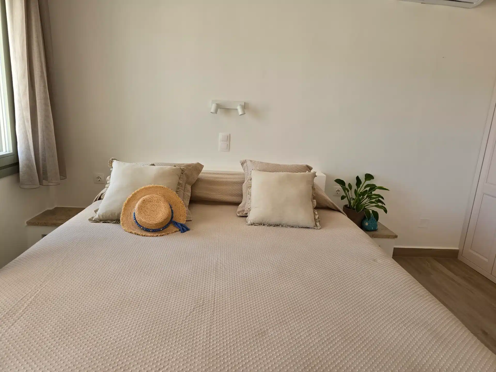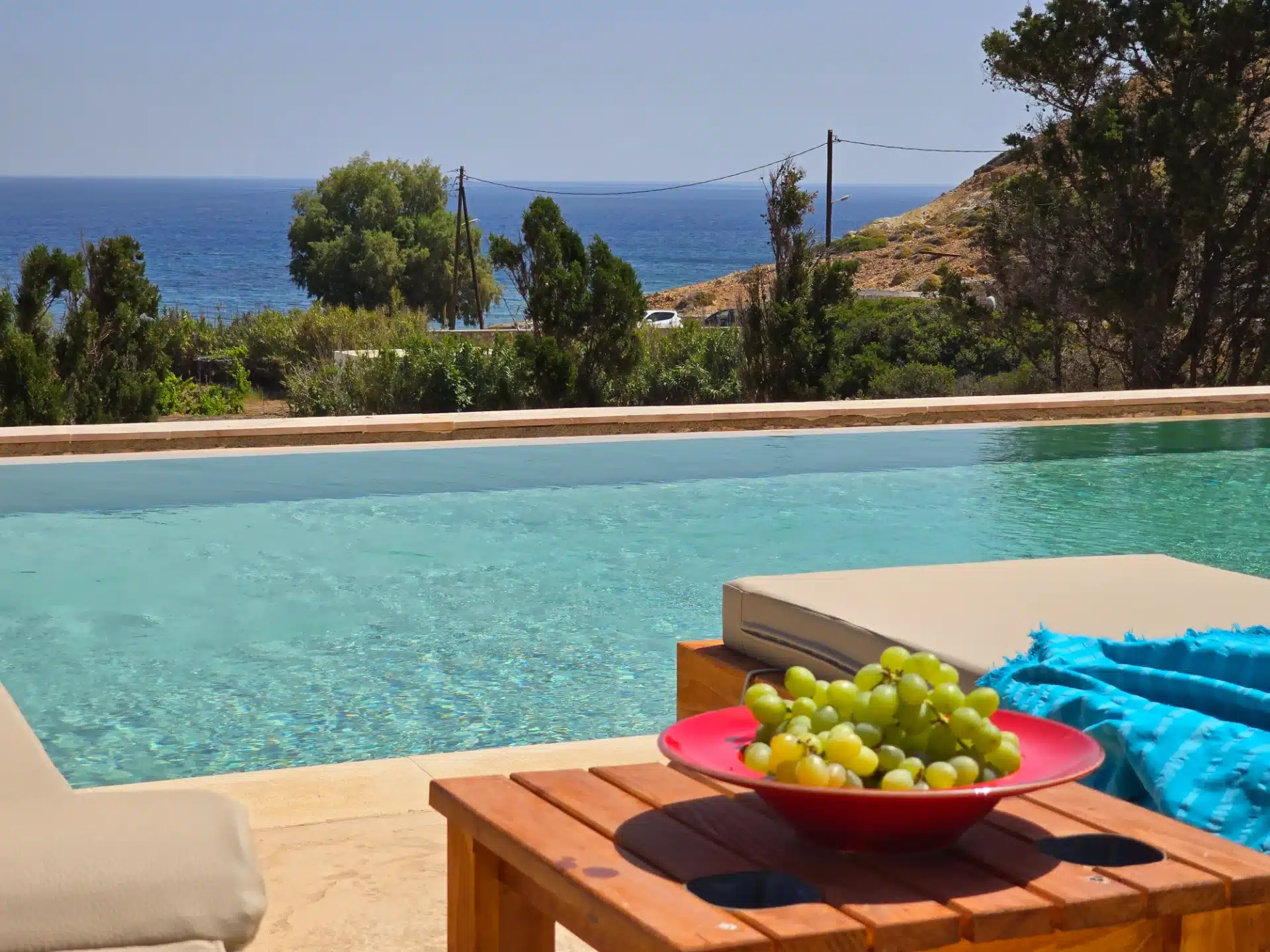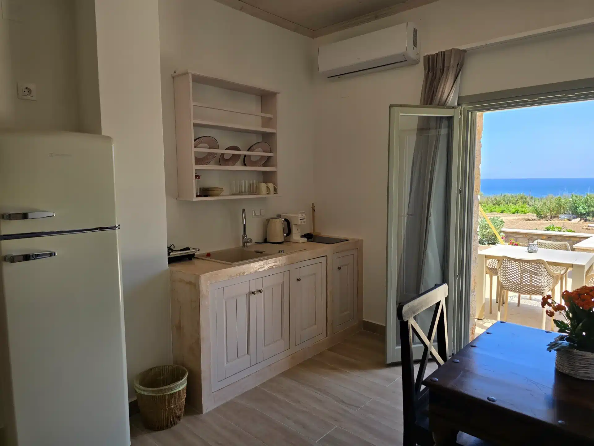 The naturalistic haven of relaxation of the Villa Del Mar complex, has a four-person, and three, three-person apartments which may accommodate up to 13 persons in total. Thanks to its quite functional arrangement, large spaces and spacious apartments, it is thought to be ideal for large groups of adults or families. The villa covers a territory of 250sm in total and is separated in four totally equipped independent apartments with separate entrances and private verandas with large dining-tables while each apartment bears its own parking space. Just 50 m. from the beach of Lampi, the Villa promises to offer you an unforgettable stay. The unobstructed view of the sea, the quiet environment, the traditional architecture combined with modern touches and the beautiful garden create a unique scenery for a memorable vacation.