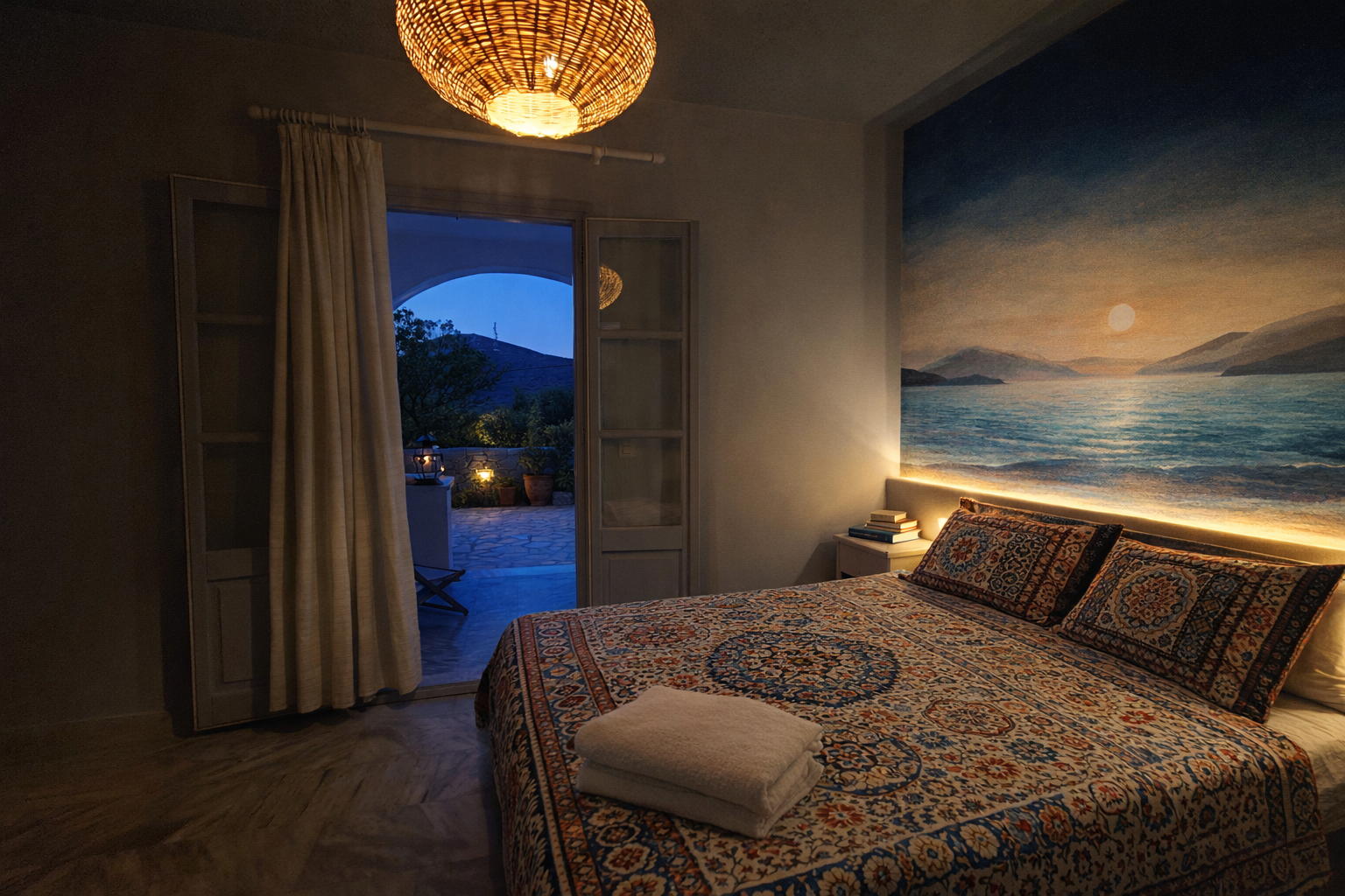 ΠΗΓΑΣΟΣ 45 τ.μ. ένα υπνοδωμάτιο με ένα διπλό κρεβάτι, ένα μπάνιο, ενιαίος χώρος  κουζίνα – τραπεζαρία – καθιστικό, βεράντα στον επάνω όροφο, βεράντα, αυλή, κήπος και λιμνούλα στο κάτω επίπεδο (όπου και το υπνοδωμάτιο).  Απευθείας   πρόσβαση στην παραλία.
