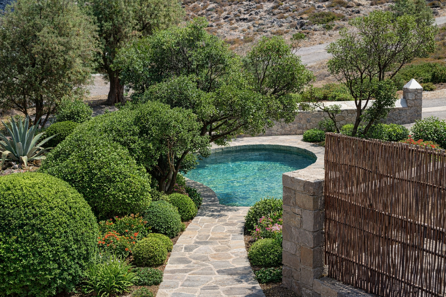 ΠΟΣΕΙΔΩΝ 54 τ.μ. δύο υπνοδωμάτια, ένα με διπλό και ένα με δύο μονά κρεβάτια, ένα μπάνιο, ενιαίος χώρος  κουζίνα – τραπεζαρία – καθιστικό, δυνατότητα ύπνου στο καθιστικό, βεράντα και αυλή για φαγητό στον επάνω όροφο, βεράντα, αυλή, κήπος και λιμνούλα στο κάτω επίπεδο (όπου και τα υπνοδωμάτια). Απευθείας πρόσβαση στην παραλία