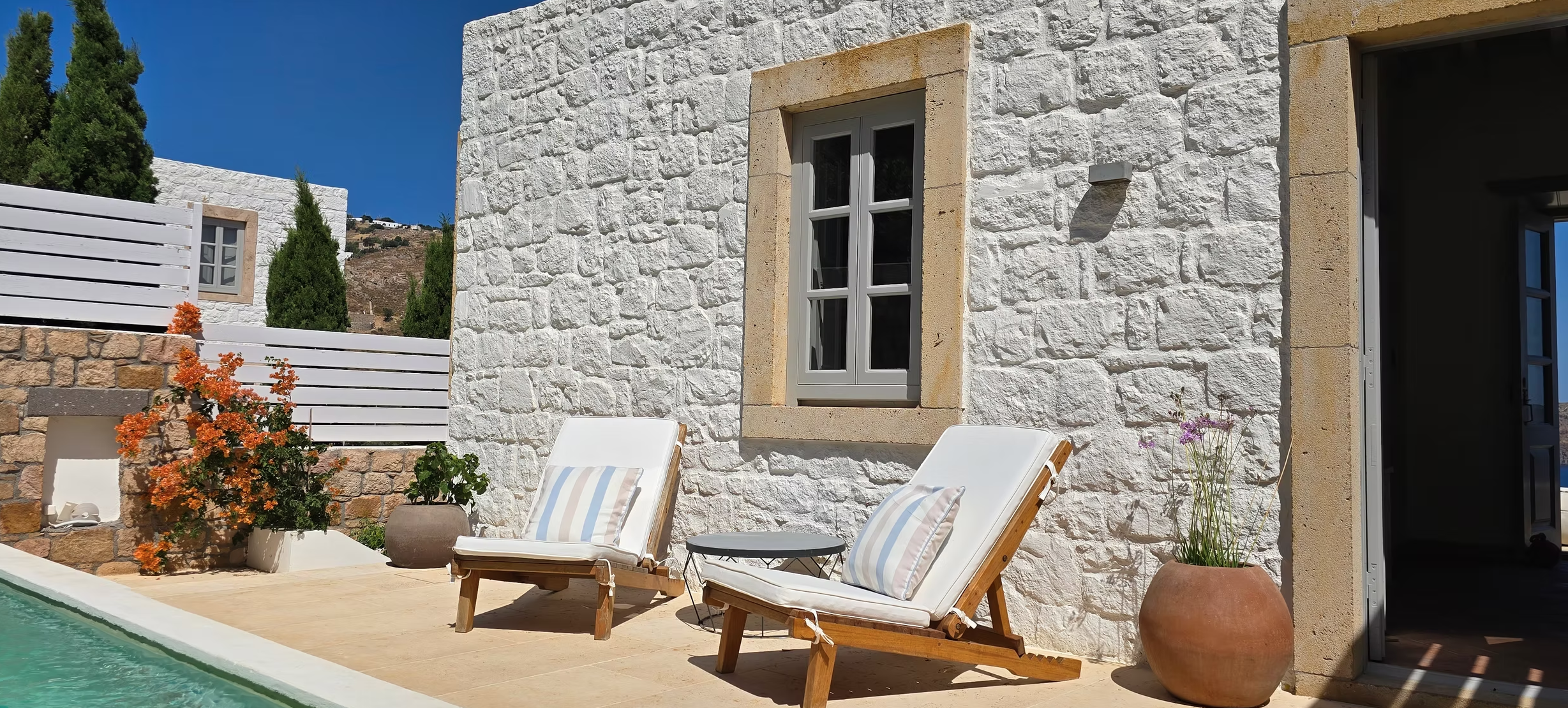 Μια όμορφη πέτρινη βίλα γεμάτη φως, με καταπληκτική θέα στη θάλασσα, ιδιωτική πισίνα και όλες τις σύγχρονες ανέσεις.Αυτή η βίλα 150 τ.μ. είναι όμορφα κατασκευασμένη με παραδοσιακή μαλακή πέτρα, δάπεδα από τερακότα και πέτρα, ενώ διαθέτει ξύλινα παντζούρια σε όλα τα παράθυρα. Προσφέρει ιδιωτικό χώρο στάθμευσης και απέχει μόλις 3 λεπτά οδικώς από το κέντρο της Σκάλας, καθιστώντας την ιδανική για όσους θέλουν να εξερευνήσουν το νησί. Αν, όμως, προτιμάτε τη θάλασσα, είναι μόλις 5 λεπτά με τα πόδια από τρεις διαφορετικές παραλίες.Σε δύο ορόφους υπάρχουν 3 υπνοδωμάτια, 3 μπάνια με ντουζιέρα, δύο σαλόνια, μεγάλη κουζίνα και ξεχωριστή μικρή κουζίνα (kitchenette). Η βίλα είναι πλήρως κλιματιζόμενη και διαθέτει 3 μεγάλες ξεχωριστές βεράντες, ιδανικές για γεύματα και στιγμές χαλάρωσης στον εξωτερικό χώρο.Τα δύο κύρια υπνοδωμάτια είναι πολύ ευρύχωρα, με κρεβάτια King-Size και υπέροχη θέα στη θάλασσα. Η Villa Julia είναι τέλεια για δύο ζευγάρια που θέλουν την ιδιωτικότητα που προσφέρει η διαρρύθμιση της βίλας, ενώ το επιπλέον μονό υπνοδωμάτιο είναι διαθέσιμο αν χρειαστεί. Φυσικά, είναι επίσης ιδανική για μια οικογένεια!