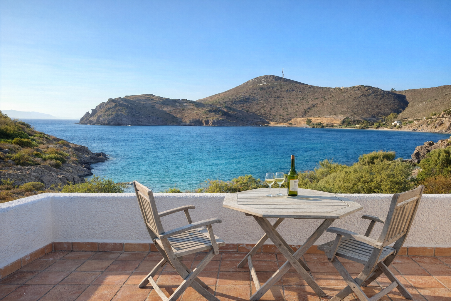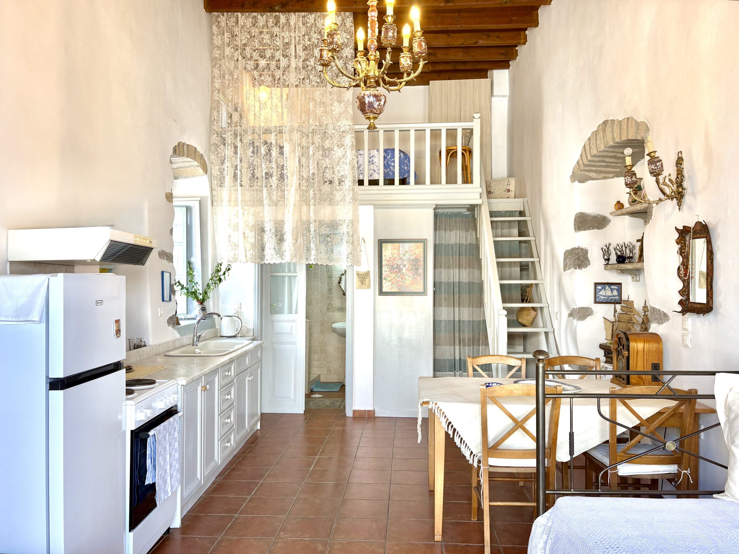 Located within a charming complex next to Merikas in Patmos, this cozy house offers a spacious private veranda with stunning sea views. Inside, you’ll find one bedroom and one bathroom, along with a comfortable living area where the sofa can accommodate two additional guests. Perfect for couples, friends, or small families seeking a relaxing island…
