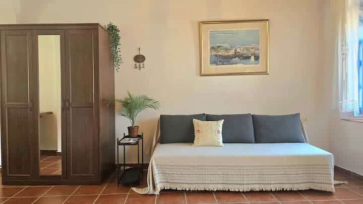 Persephone’s Home is located in a very privileged location in the heart of Skala. Its a fully equipped home of 42 sq. m. with a double bed and a sofa bed which can easily accommodate a couple or a family. Outside, a magnificent yard with outdoor furniture and beautiful view to the sea. An ideal…