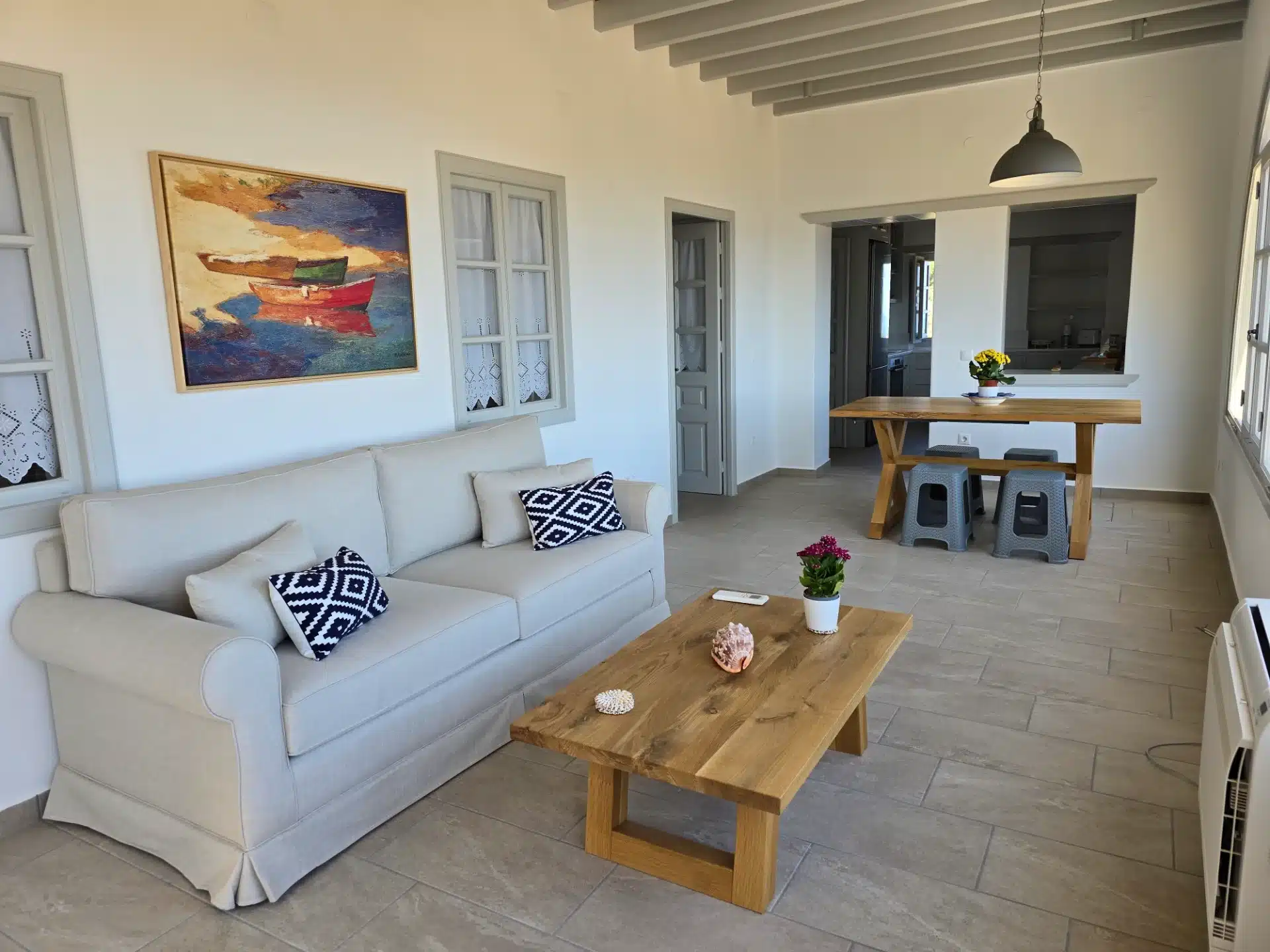 A recently constructed house in Kato Merikas, a residential and very quiet area. The location is ideal for everyone who wants to stay in Skala (10 minutes walk) and has the beach a few minutes away. Very close there is a bakery, a vegetable shop and a supermarket open until late. The house was built…