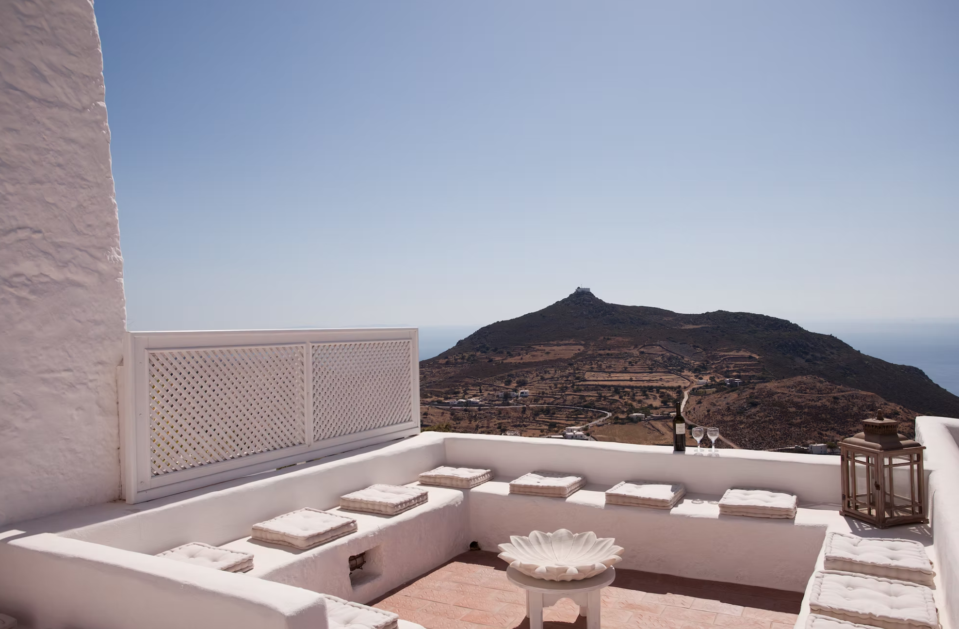 A beautiful and spacious house with an exceptionally large garden, breathtaking view of the island and the holy monastery of Chora. The major house is composed of a spacious, fully-equipped kitchen, a winter lounge, a south-east-facing dining terrace, a bathroom and two master bedrooms, one of which is upstairs with it’s private 30 m2 terrace.…