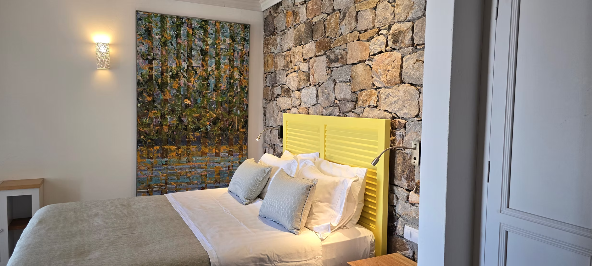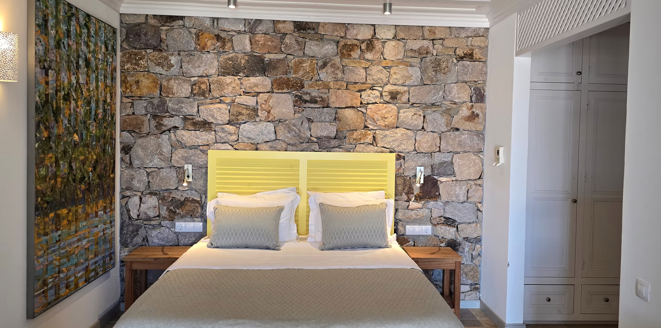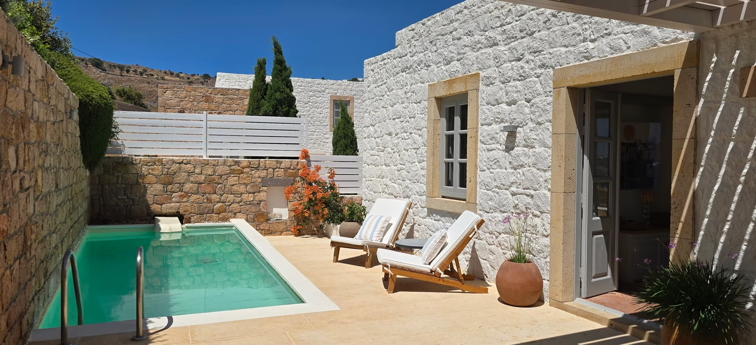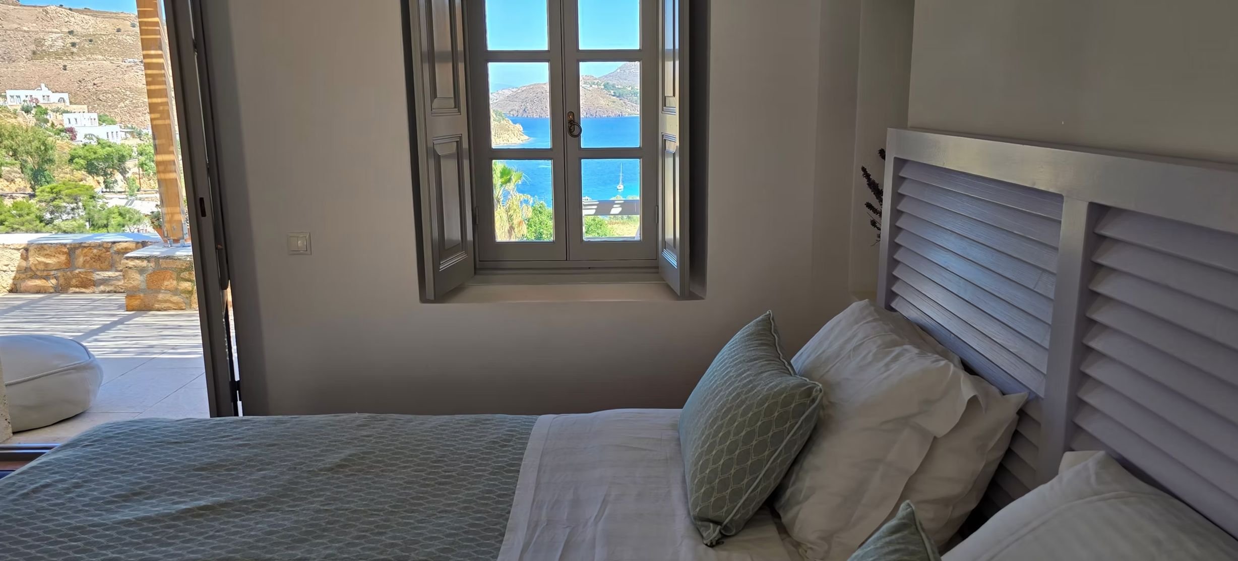 The earthly paradise of Blue Vista Patmos is found in a magnificent, peaceful location, just five minutes from Skala, thus providing direct access to the full of life port of Patmos. Built with respect to the standards of island architecture of the Eastern Aegean Sea, the eco-friendly complex with the traditional look and high quality services, seems like a true oasis of well-being.